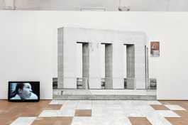 Photography on Copy Paper, Framed Photograph, one channel Video, Floor panels with marble foil